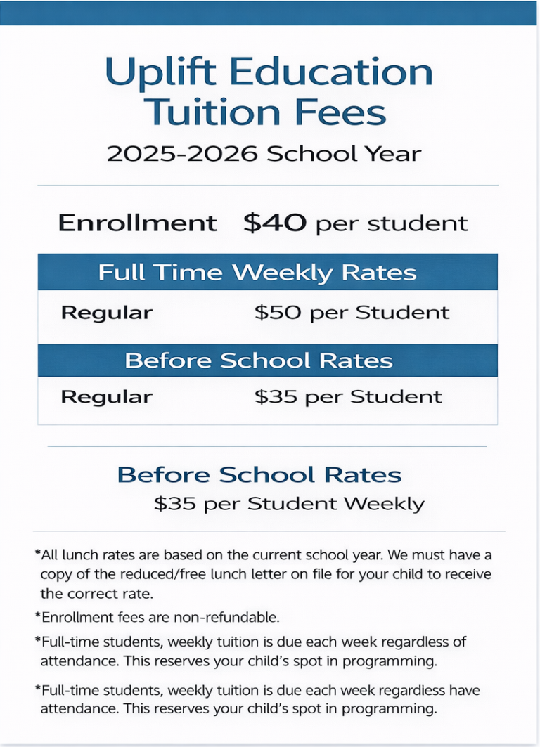 Offered at select Uplift campuses, our programs bring learning to life beyond the school day with homework support, creative projects, games, outdoor play, and time with friends, all in a familiar school setting.